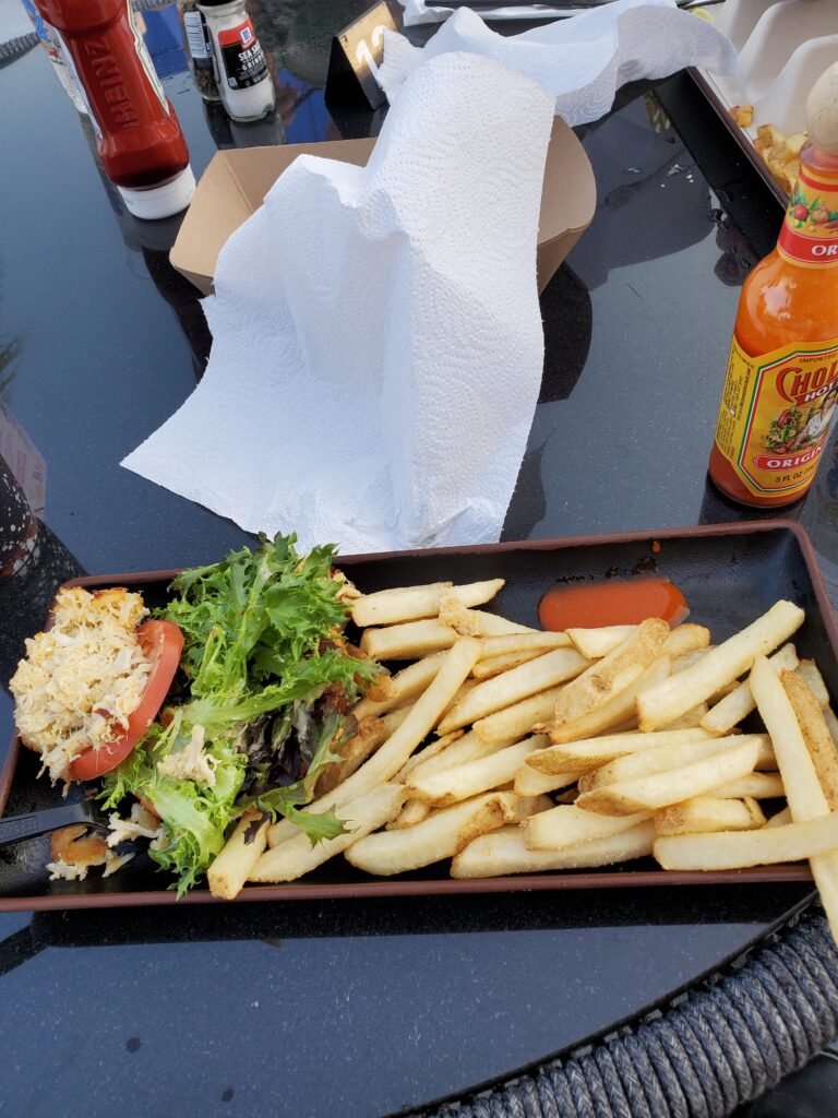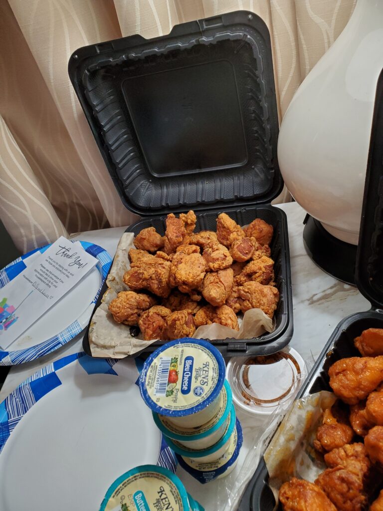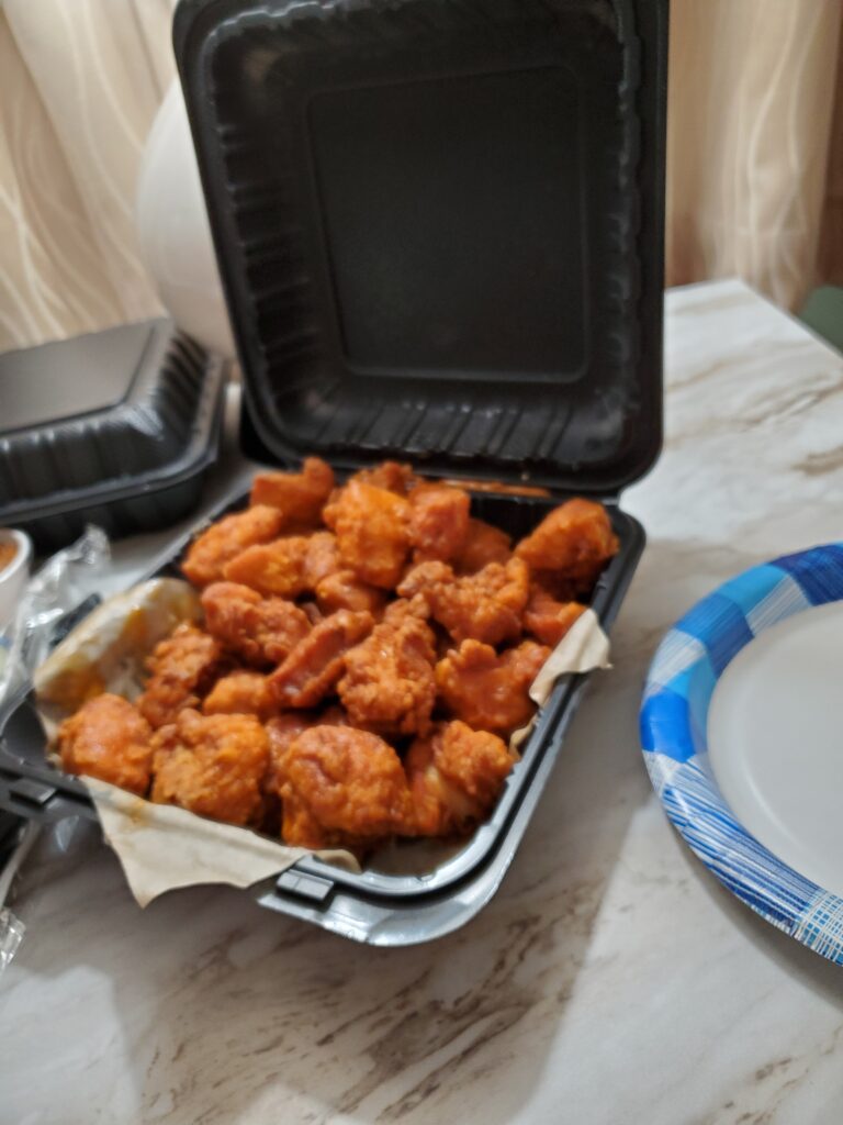 It was thundering soon, so that’s why Mom, Mommom, and I were at hotel, ordering Hooters. It was okay.