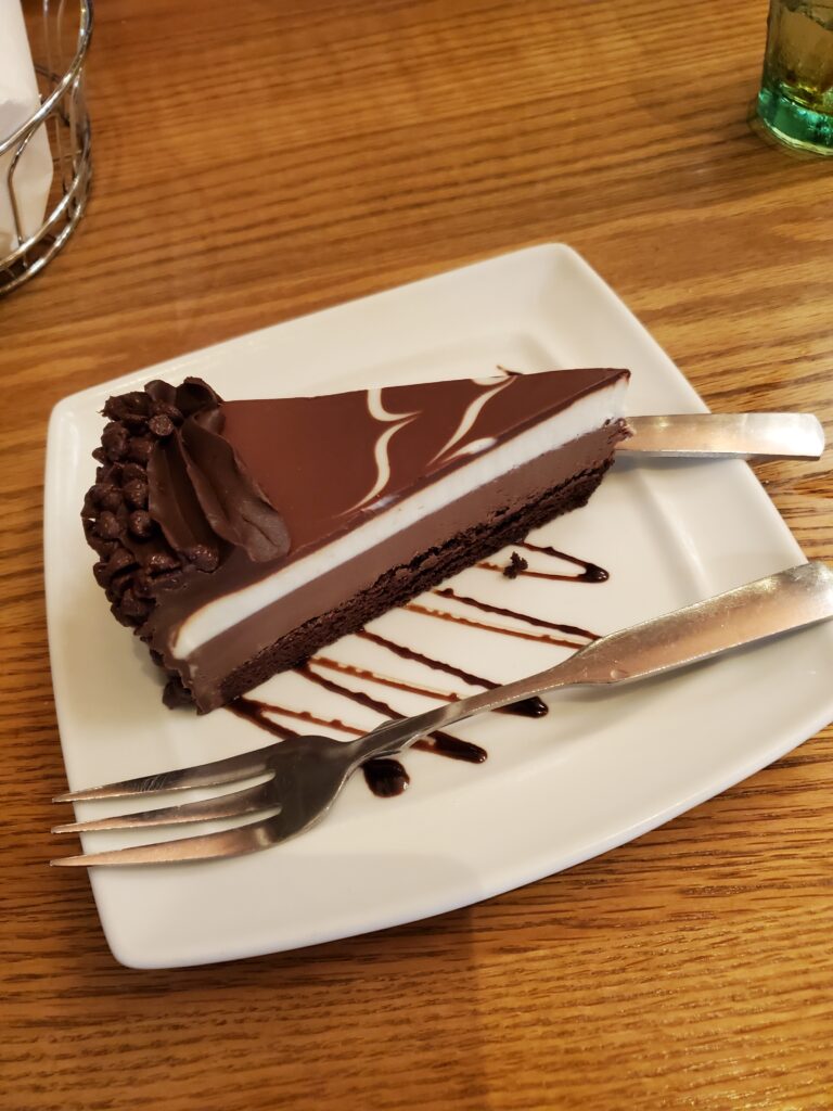 Uncle Larry, Julia, and I went to The Cheesecake Factory. I had shrimp and pasta with Tabasco. Uncle Larry and Julia both had salads. Then a bee showed up, and I was mad, but it went away, so it was fine.