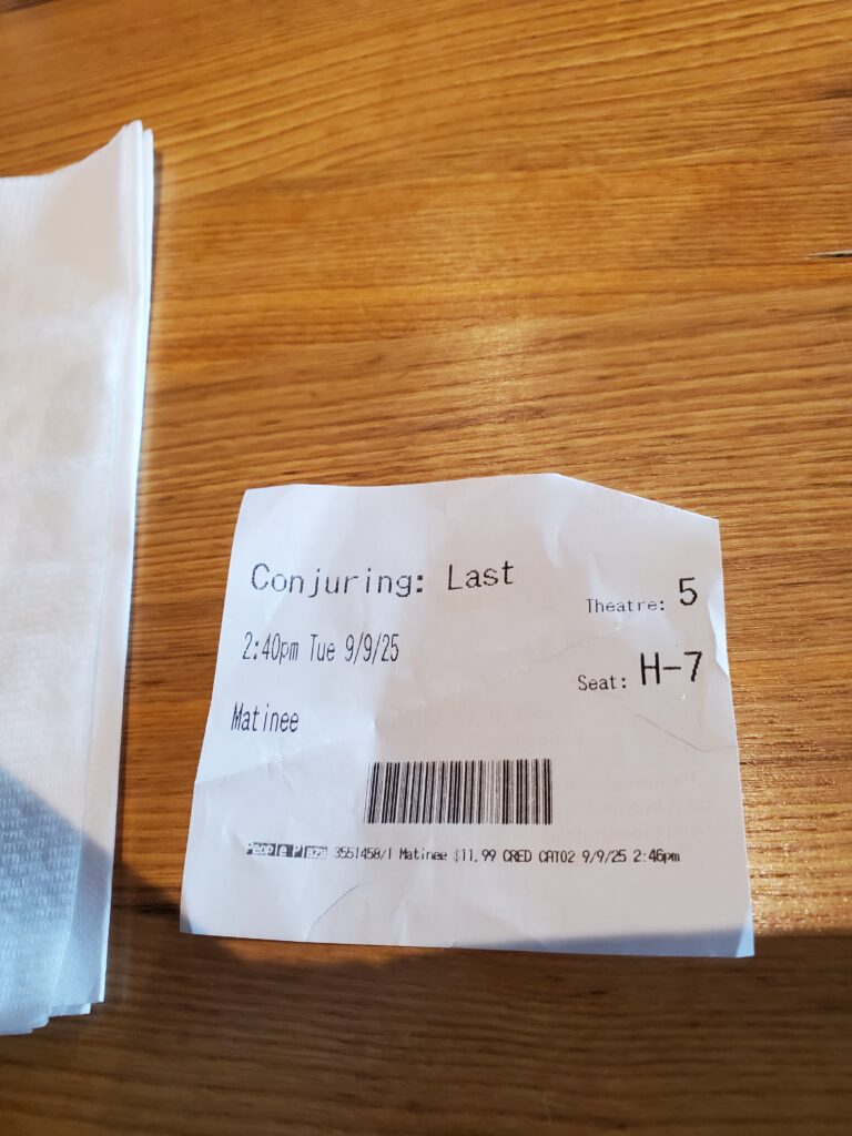Mom and I went to see The Conjuring: Last Rites. It was very slow until the last 30 minutes, but the ending was great. I’d give it a 6/10.